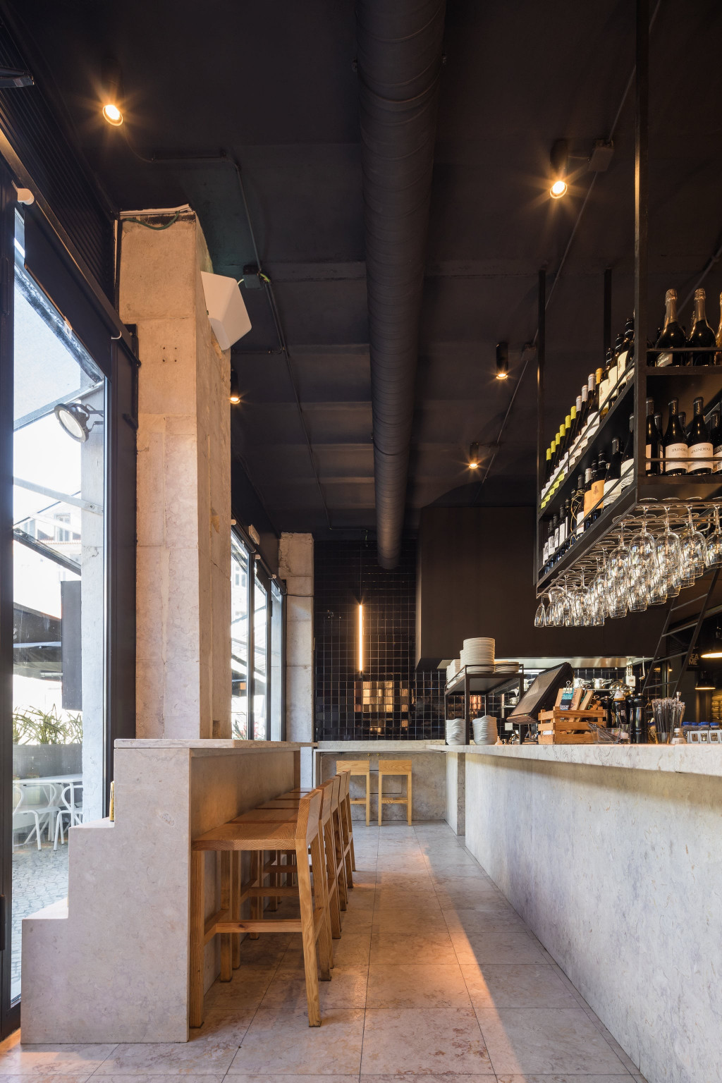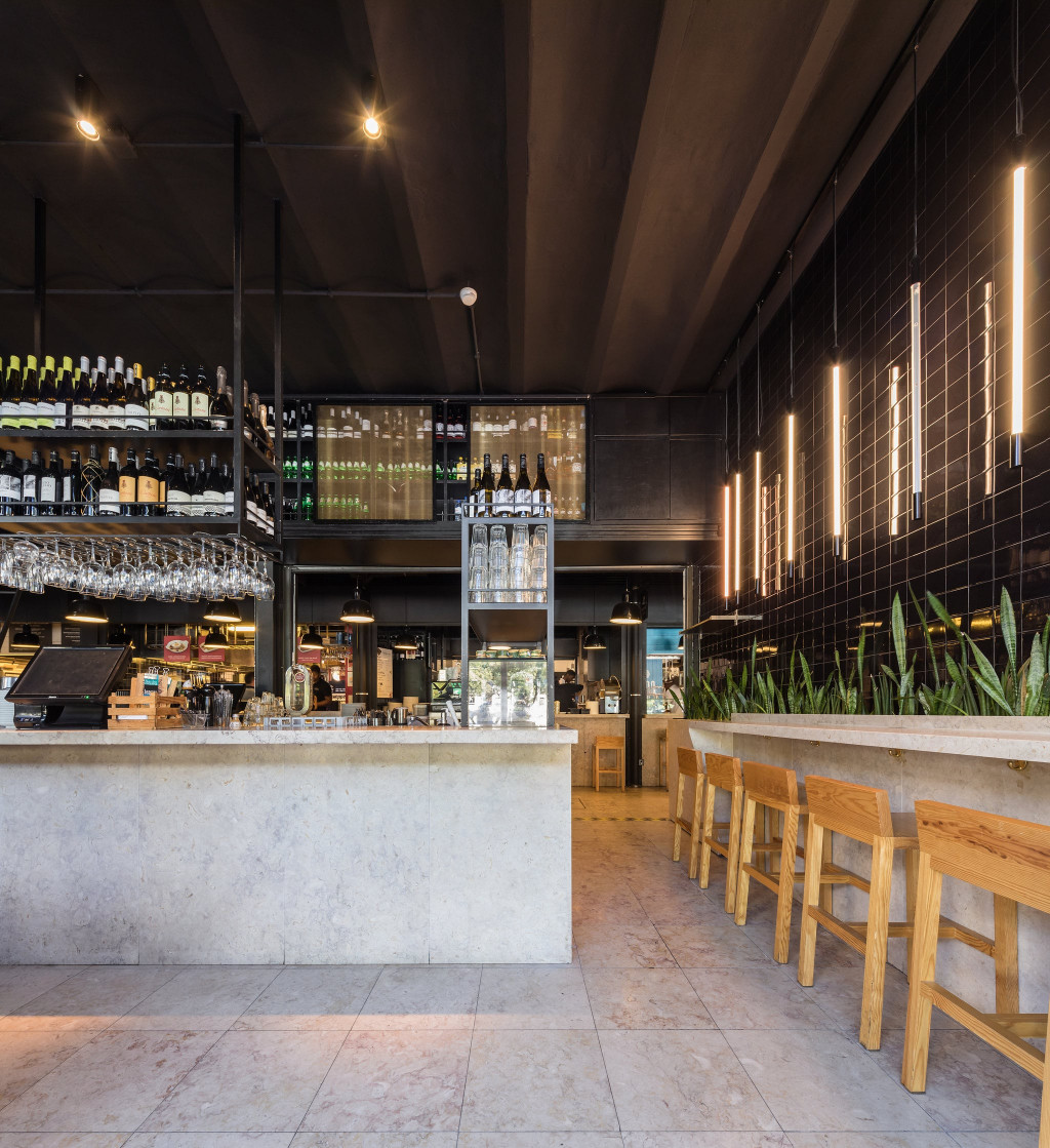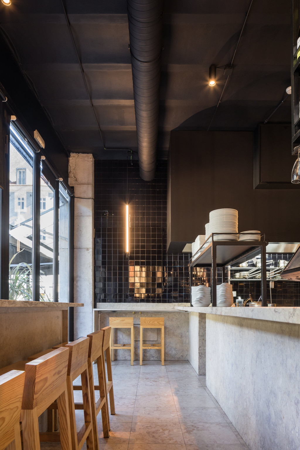 Balcão da Esquina is a restaurant designed by the studio DC.AD, featuring black tiles from our Technical collection on the wall cladding of the counters.
