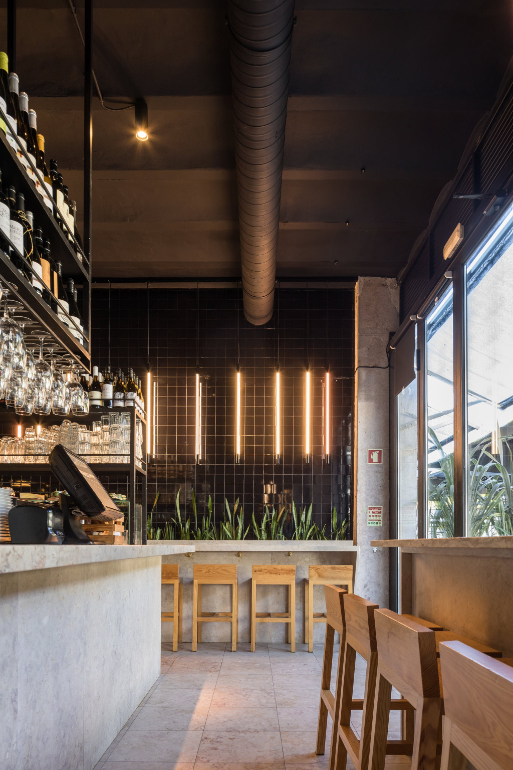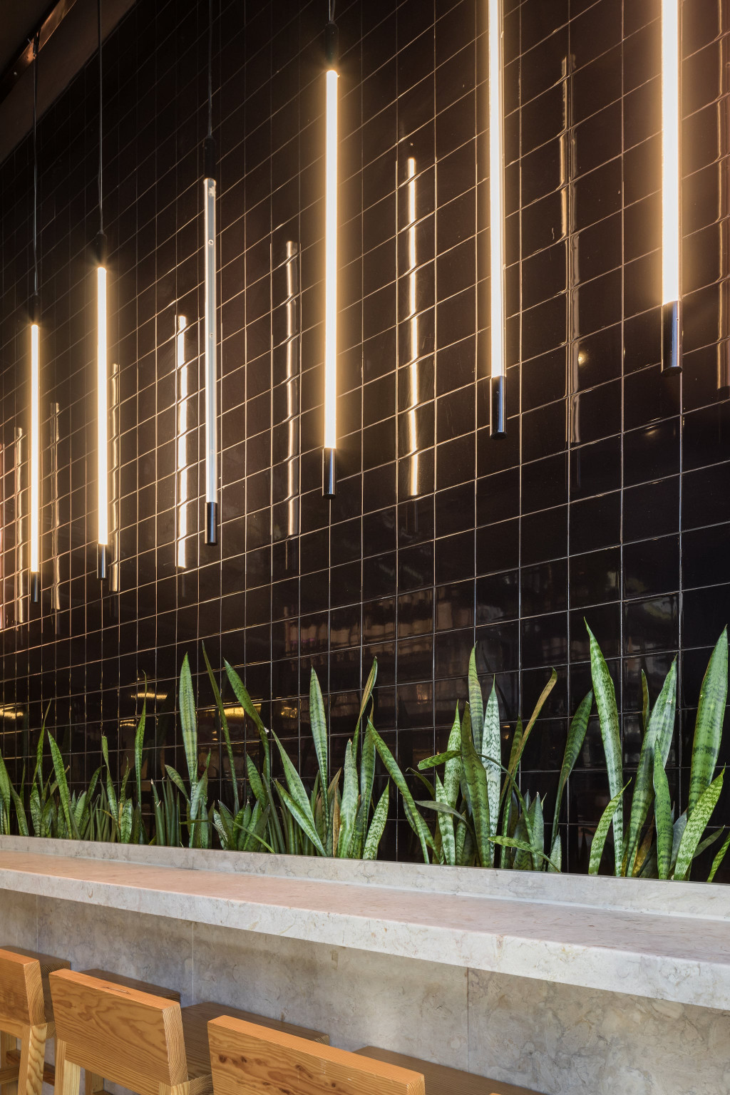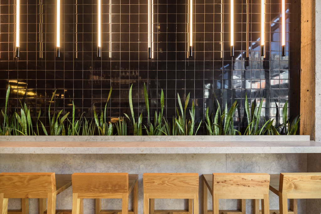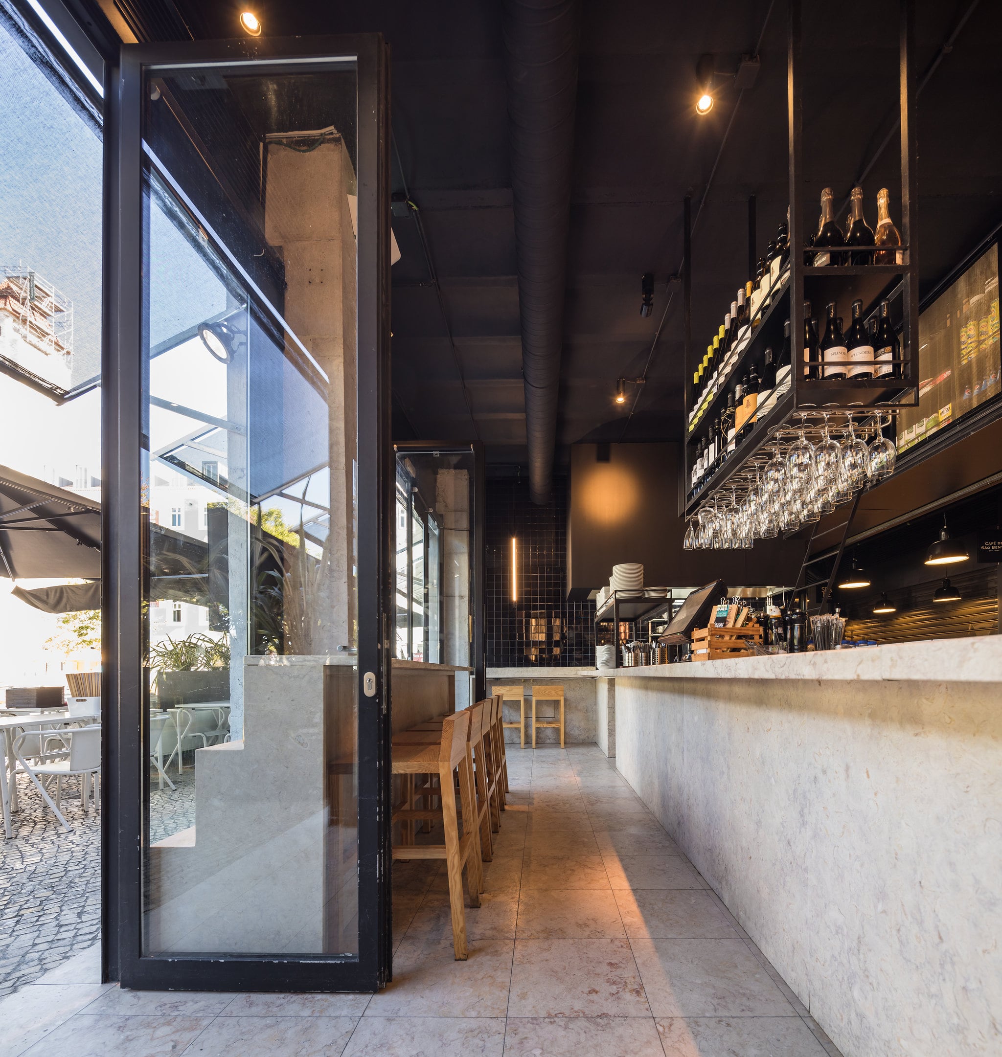 Balcão da Esquina is a restaurant designed by the studio DC.AD, featuring black tiles from our Technical collection on the wall cladding of the counters.